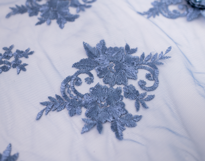 Be the first to review “Blue 3D Embroidered Lace on tulle Panel”