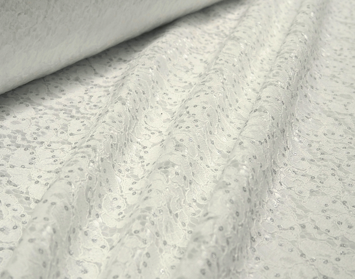 A unique combination of lustrous satin covered in abstract 3D lace, with a touch of shimmering sequins. The bonding of these two fabrics added a delicate texture to the surface while remaining silky smooth on the reverse side. Lining is not neccesary as the satin fabric acts like a lining itself. It is light-medium weight and perfect for statement pieces, bridal gowns, lingerie, corsets, or even face mask!