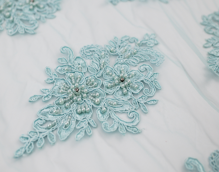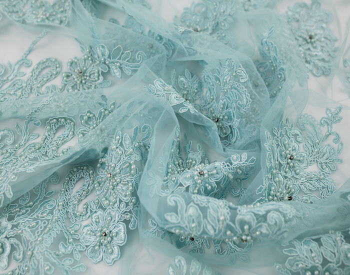 Teal Beaded Floral Embroidered Lace